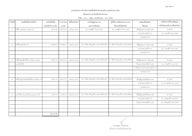 รายงานการจัดซื้อจัดจ้าง ประจำเดือน พฤศจิกายน 2566